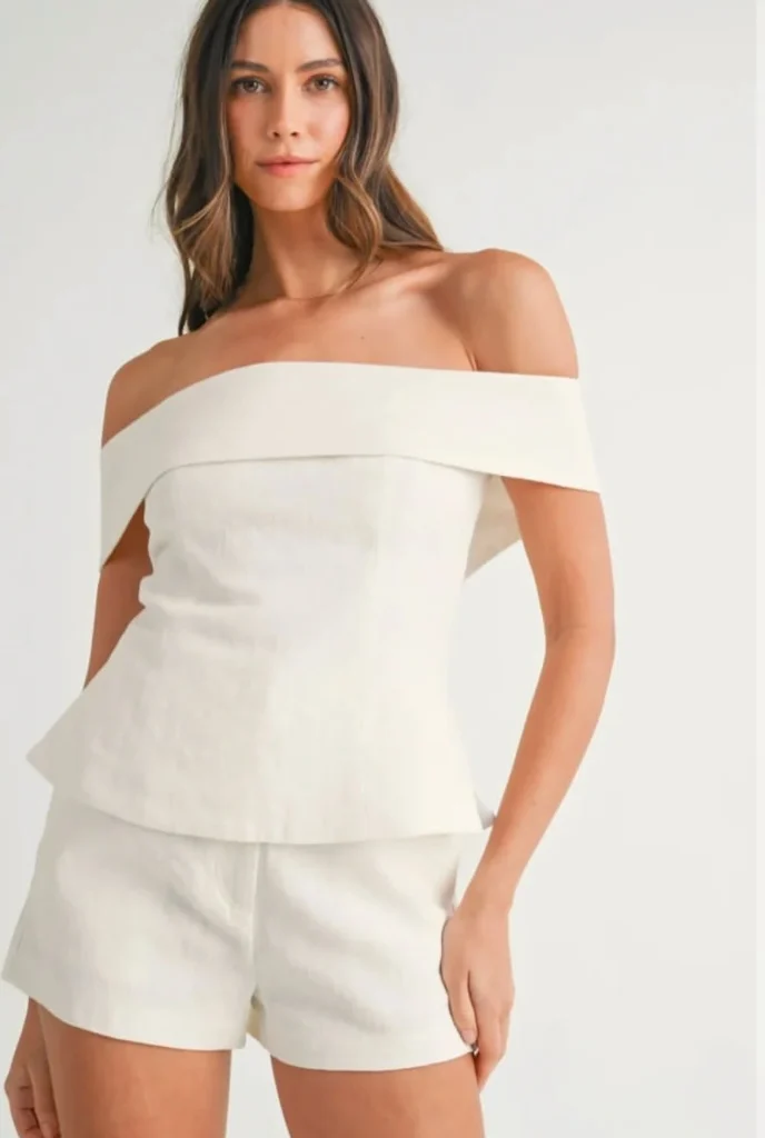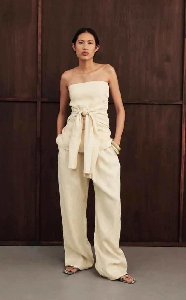 4. The Strapless Bandeau + Linen Trousers