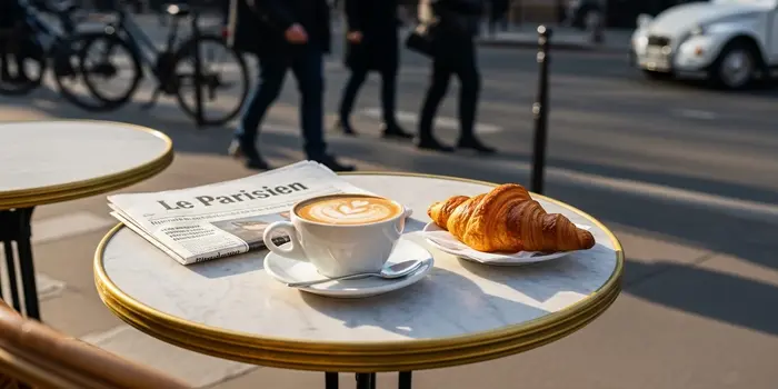 Experiencing the quintessential Parisian morning with fresh coffee and pastries at a local sidewalk cafe.