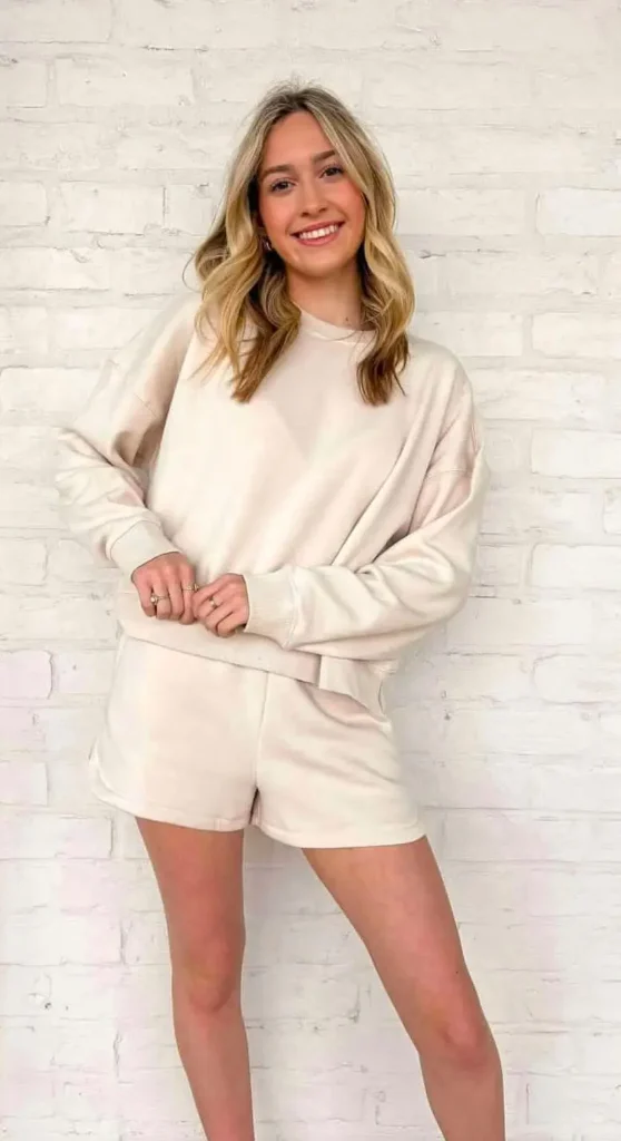 The matching of top and shorts creates an intentional, pulled-together look with almost no effort. Add heeled sandals and you have an evening outfit. Flat sandals and it is daytime. Same set, completely different energy.