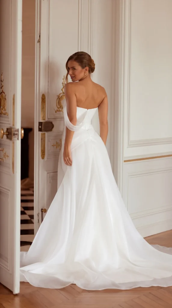 A bias-cut slip dress in ivory, champagne, or dusty blush drapes beautifully against the body. It moves like water. It feels like almost nothing.