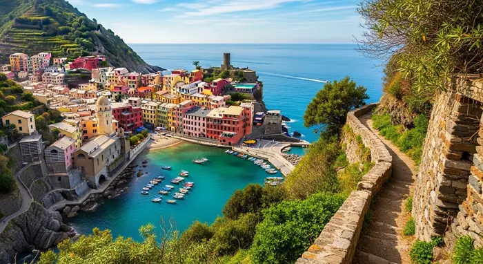 The best way to see how colorful these towns really are is from the water. When you look back at the land from a boat, you can see the houses stacked like blocks on the cliffs. It is a completely different view than walking or taking the train.